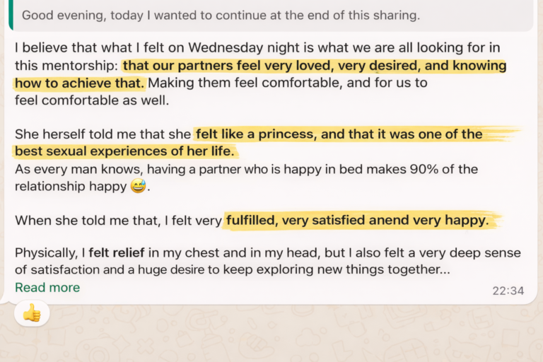 I believe that what I felt on Wednesday night is what we are all looking for in this mentorship: that our partners feel very loved, very desired, and knowing how to achieve that.