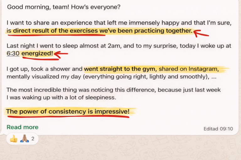 I want to share an experience that made me immensely happy and that, I’m sure, is…A direct result of the exercises we are practicing together.